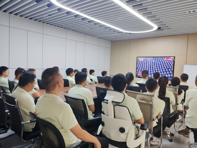 隨著閱兵盛典的開始,全體員工已整裝待發(fā),或坐在各自的辦公室,或聚集在五樓大會議室,共同期待著閱兵式的開始。這一刻,每個人的心中都充滿了對歷史的敬畏與對和平的珍惜。直播畫面中,雄壯的國歌聲響起,鮮艷的五星紅旗冉冉升起,那一刻,我們仿佛穿越了時(shí)空,回到了那個烽火連天的年代。無數(shù)先烈用鮮血和生命換來了今天的和平與繁榮,他們的英勇事跡將永遠(yuǎn)銘記在我們心中。