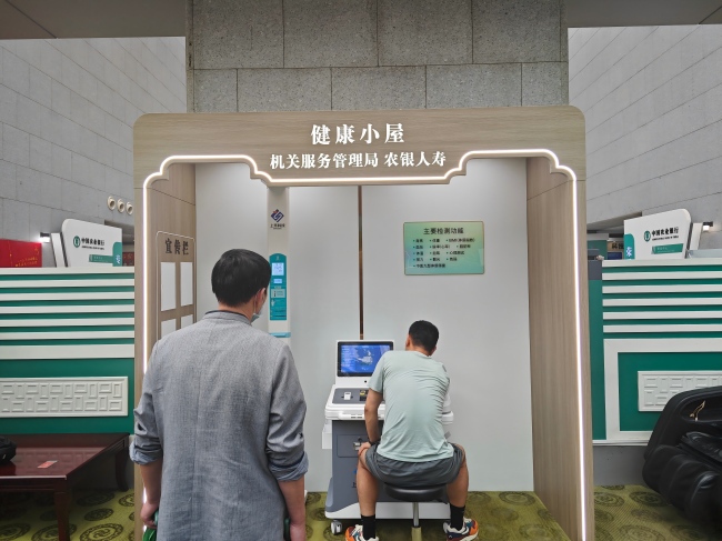 在農(nóng)行總行大廈的北樓大廳,一座科技感十足的「健康小屋」悄然成為員工打卡熱點(diǎn)。這里沒(méi)有冗長(zhǎng)的體檢排隊(duì),只需刷身份證站立5分鐘,身高、體重、體脂、血壓等多項(xiàng)核心指標(biāo)報(bào)告即時(shí)生成。支撐這一高效體驗(yàn)的,正是上禾科技